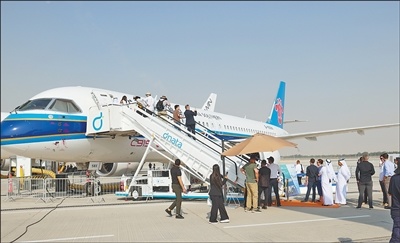 “这是中国制造的C919首次亮相迪拜航展”,随着现场解说员的介绍,国产大飞机C919在航展飞行展示区进行低空通场,划出优美弧线,航空爱好者纷纷用专业设备记录其起飞、飞行、降落的全过程。航展期间,几乎每天下午的特定时段,中国商飞公司的C919会如期进行空中展示。